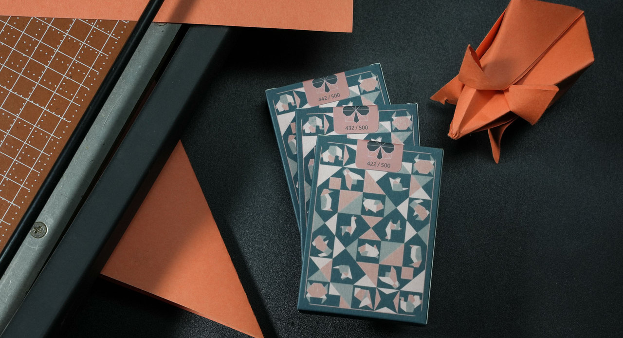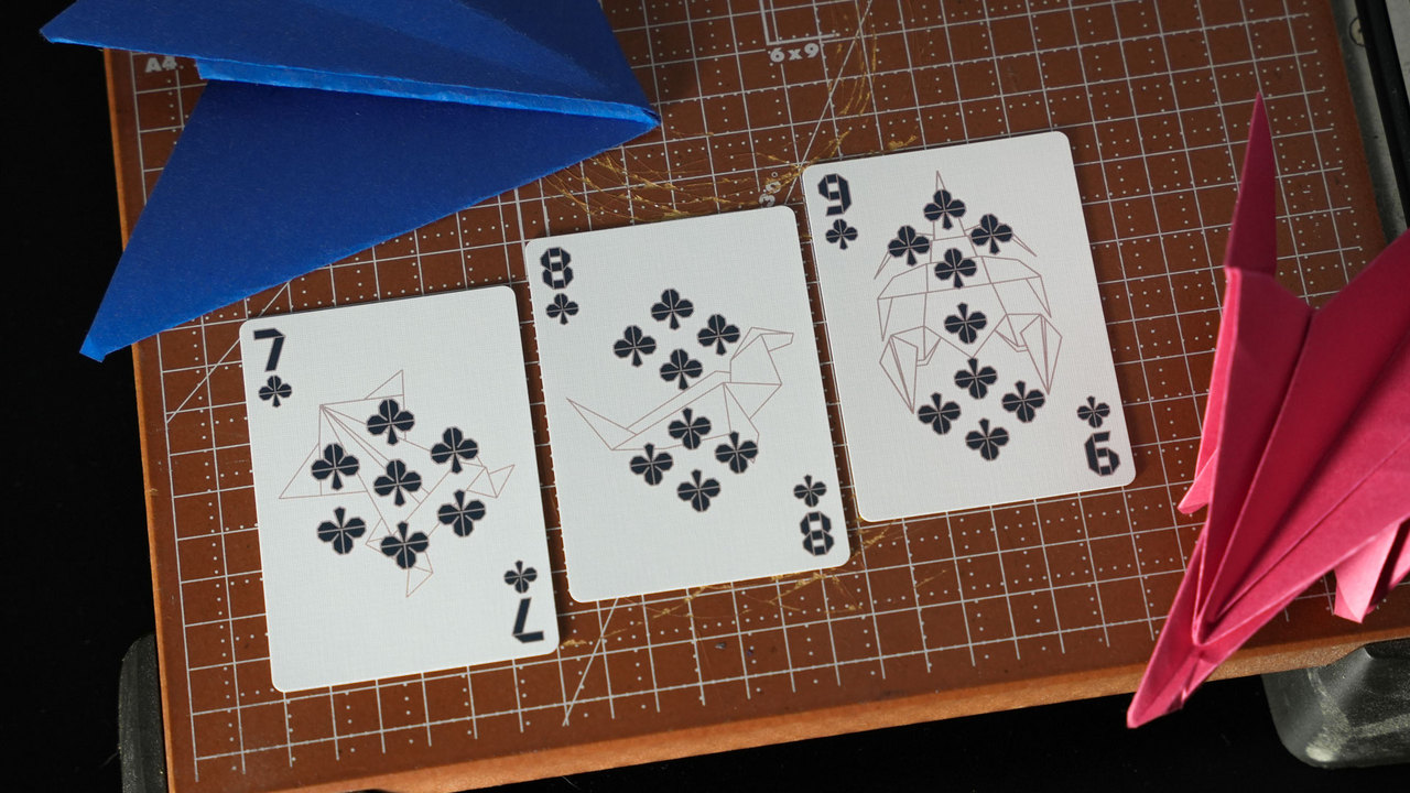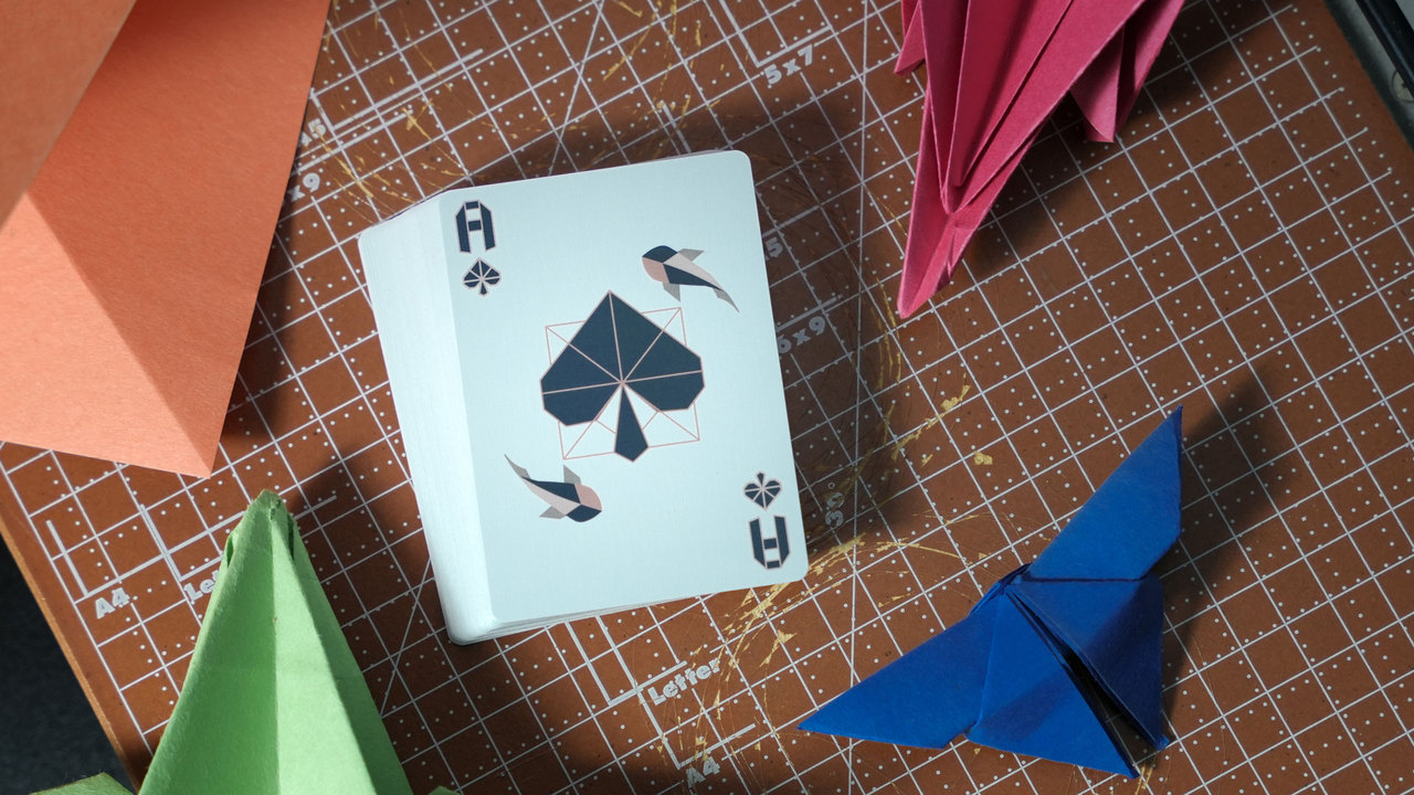 Paying tribute to the beautiful Japanese art of paper folding, the Origami playing cards are a 100% custom deck featuring custom artwork throughout.