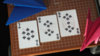 Designed by Anna Lukavska, the back designs showcase a variety of origami animals. The number cards have suit pips that look as though they've been folded out of paper, with different origami animals in the background. The court cards have origami characters featuring swords and parasols. The jokers have terrifying origami dragons!