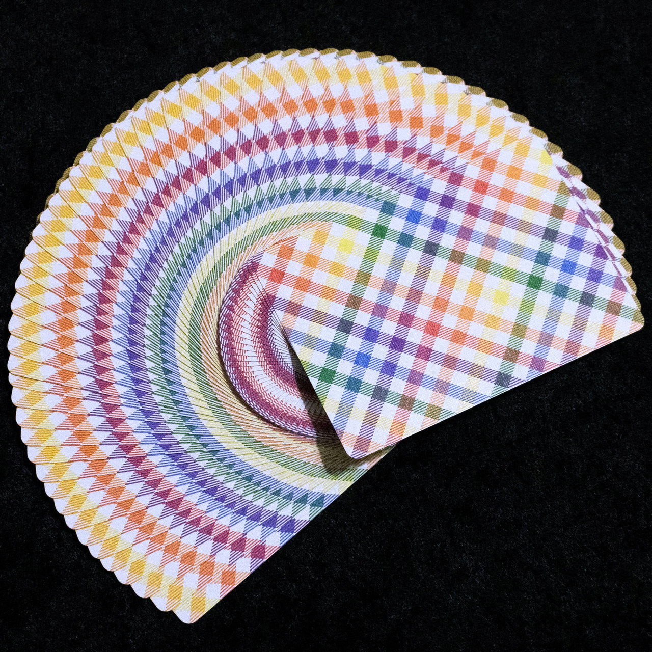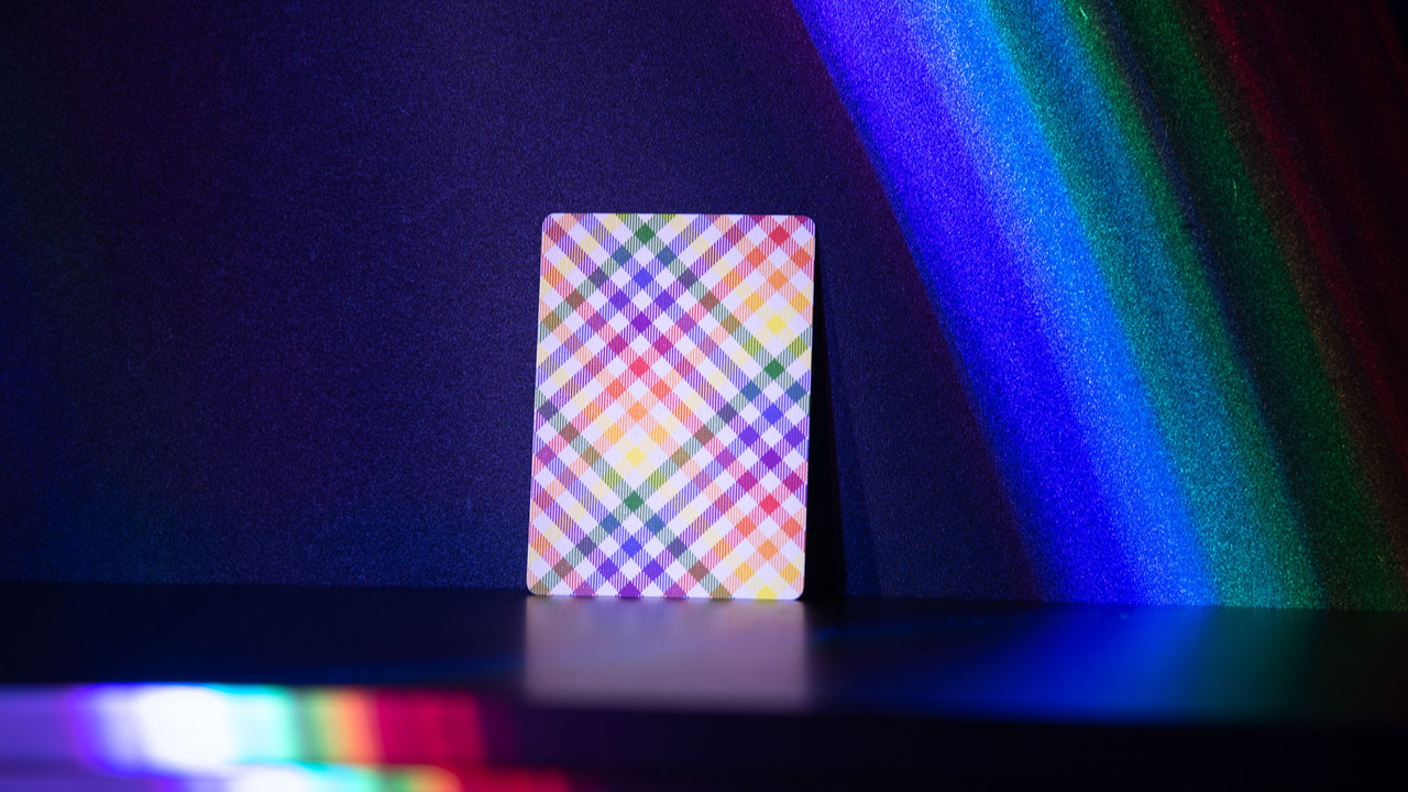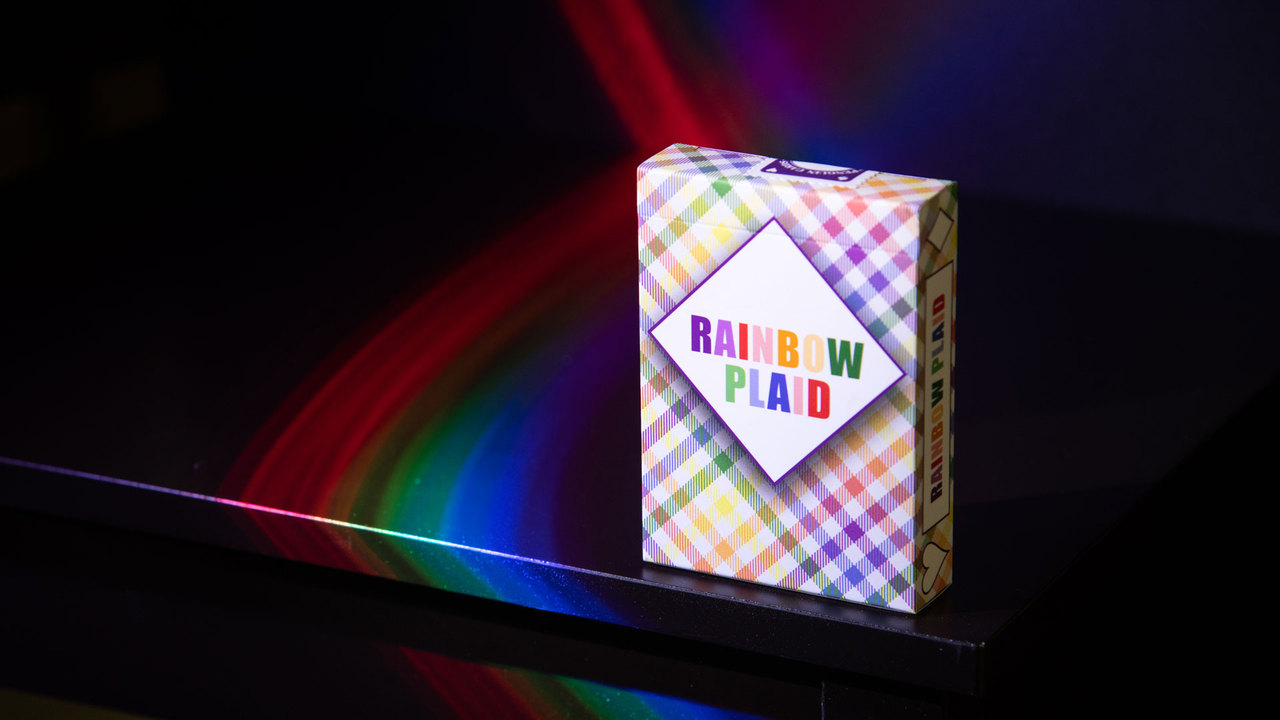 Rainbow Plaid playing cards bring a fun & stylish flair to the card table. The back design takes a classic plaid pattern into the modern age by incorporating the colors of the rainbow. The borderless back design makes Rainbow Plaid an amazing fanning deck - offering 4 different looks depending on which way you fan the cards.