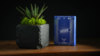 The box is made from a premium matte blue paper with all of the design work stamped in luxurious silver foil inside and out. The box is sealed with an individually-numbered foil stamp.