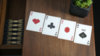 The faces use custom fonts, new pip designs & layouts on the number cards, and custom court card designs. Despite the customization, the faces maintain enough familiarity to be suitable for all tricks and games.