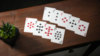 The faces use custom fonts, new pip designs & layouts on the number cards, and custom court card designs. Despite the customization, the faces maintain enough familiarity to be suitable for all tricks and games.
