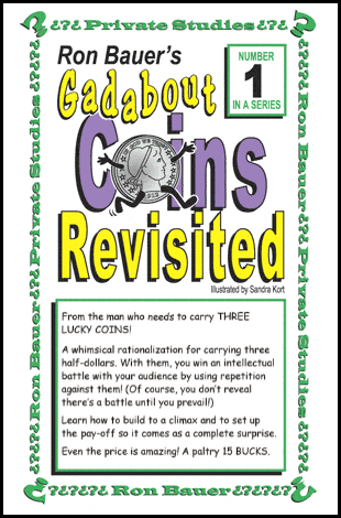 From the man who needs to carry three lucky coins! A whimsical rationalization for carrying three half-dollars. With them, you win an intellectual battle with your audience by using repetition against them! (Of course, you don't reveal there's a battle until you prevail!)