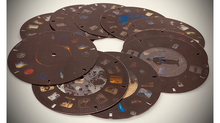 A spectator chooses one and pops it in the Viewmaster. He then puts everything behind his back and chooses one image randomly. He then looks at this image and keeps it in mind. The magician takes a notepad and draws the exact image the spectator is thinking of.