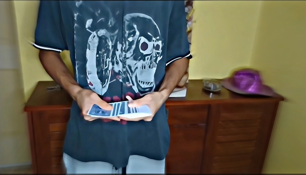 The suspense builds...then in full view with invisible movement the signed card miraculously appears on top!