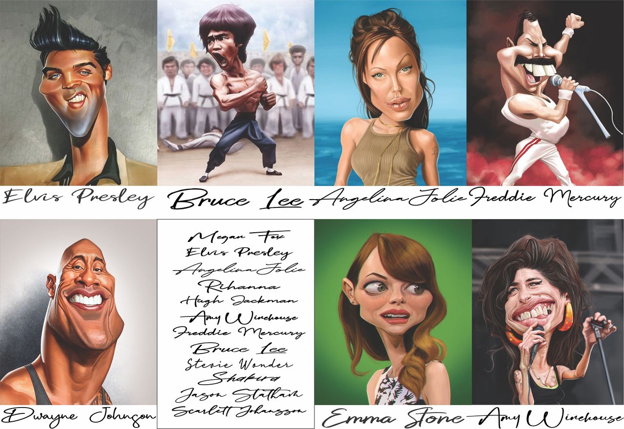 The audience chooses a card from the deck which has a lot of caricatures of celebrities.
