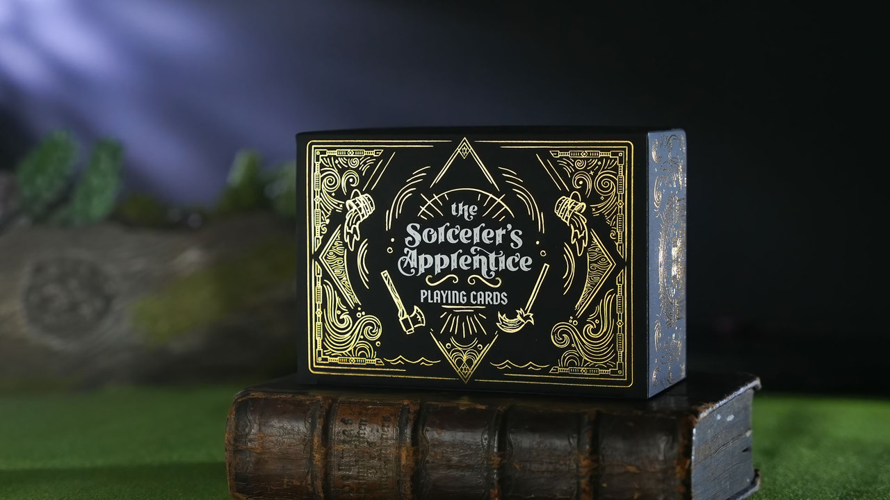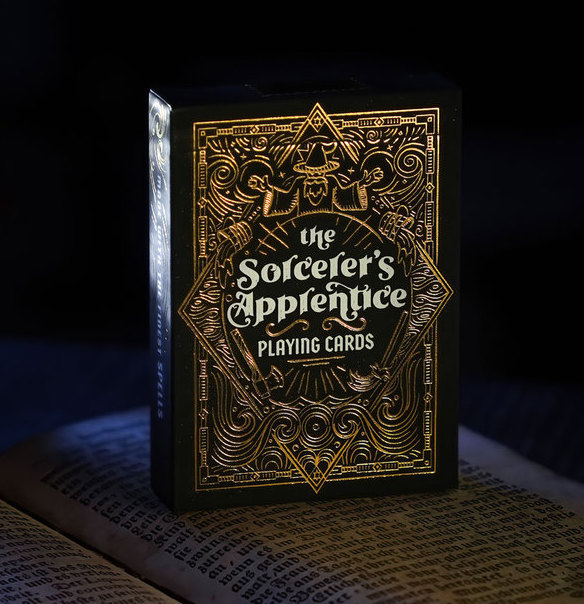 Limited to only 500 decks, the Black & Gold Sorcerer's Apprentice decks are available individually, or in a 6-pack with a custom collector's box made from the same soft-touch black paper and gold & white foils as the tuck boxes.