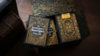 •Custom soft-touch matte black paper tuck box with gold & white foils