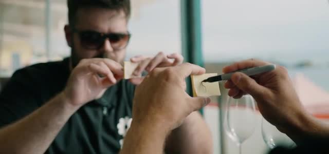 the spectator's hands to write their number, or you can hold it like they do in the video. It is