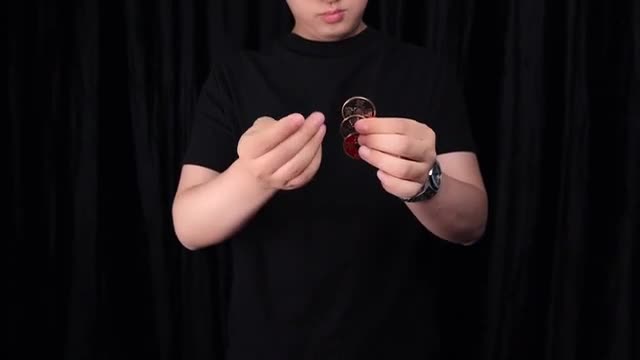 You grab three ancient Chinese coins from the air and then let them disappear into the air one by one.