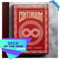 Printed with vegetable-based inks and water-based coating, the cards are planet-friendly as well! Continuum decks are soft enough to get to work straight out of the box, but durable enough to meet the needs of a full-time magician, cardist, or card sharp.