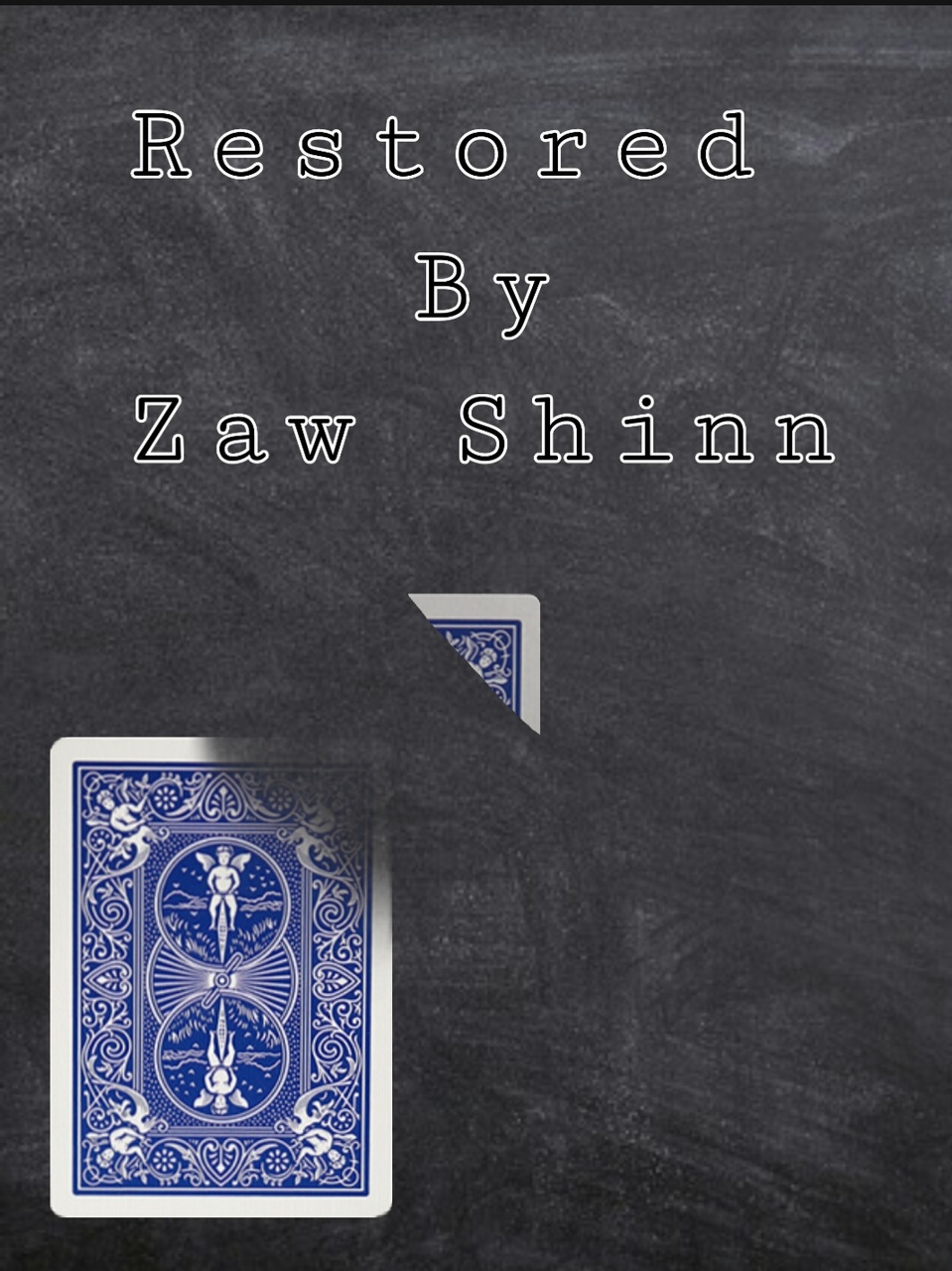 magician bitten by mouth this card and put this corner on the deck.When magician sapped this corner vanish .Magician bitten card was restore when pull out from the mouth.