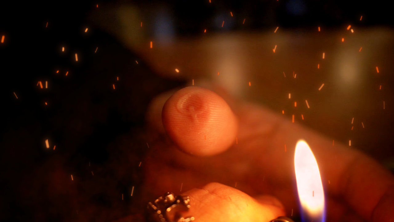 You have a card freely chosen by your spectators. The selection is genuinely free; they can even shuffle the deck before they select the card. The spectator uses a marker to write down the identity of the card on a piece of paper. The paper is burned, and suddenly the magician reacts as though the spectator is burning not just the paper but also the magician. When the magician’s hand is examined, the image of the selected card’s identity is shown as angry blisters bubbling up on their fingertips.