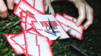 The tuck is a quirky line-drawn SIDE OPENING box.