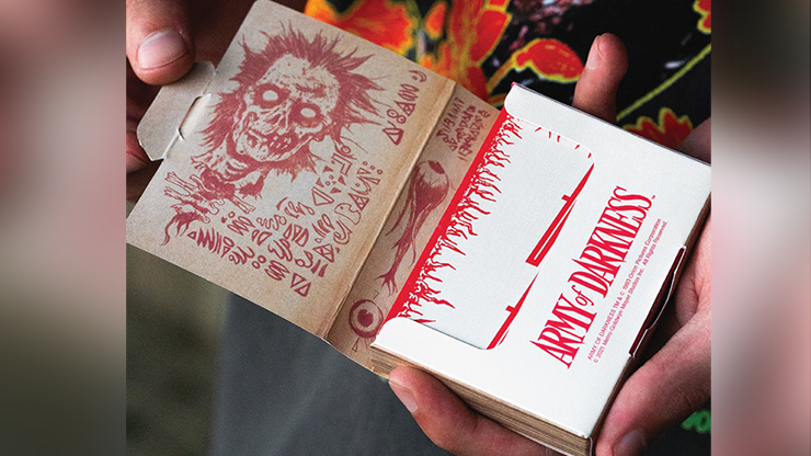 Army of Darkness x Fontaine Playing Cards are a completely custom deck influenced by the comedy-horror epic Evil Dead trilogy: Army of Darkness. The film follows Ash Williams who is trapped in the Middle Ages and battles Zombies in his quest to return to the present.