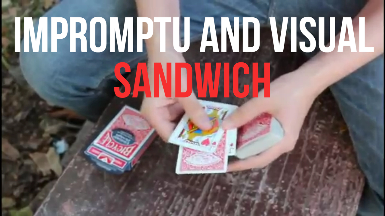 You will be able to perform this visual card sandwich effect with a borrowed deck and being able to show cleanly only two cards before the main appearance.