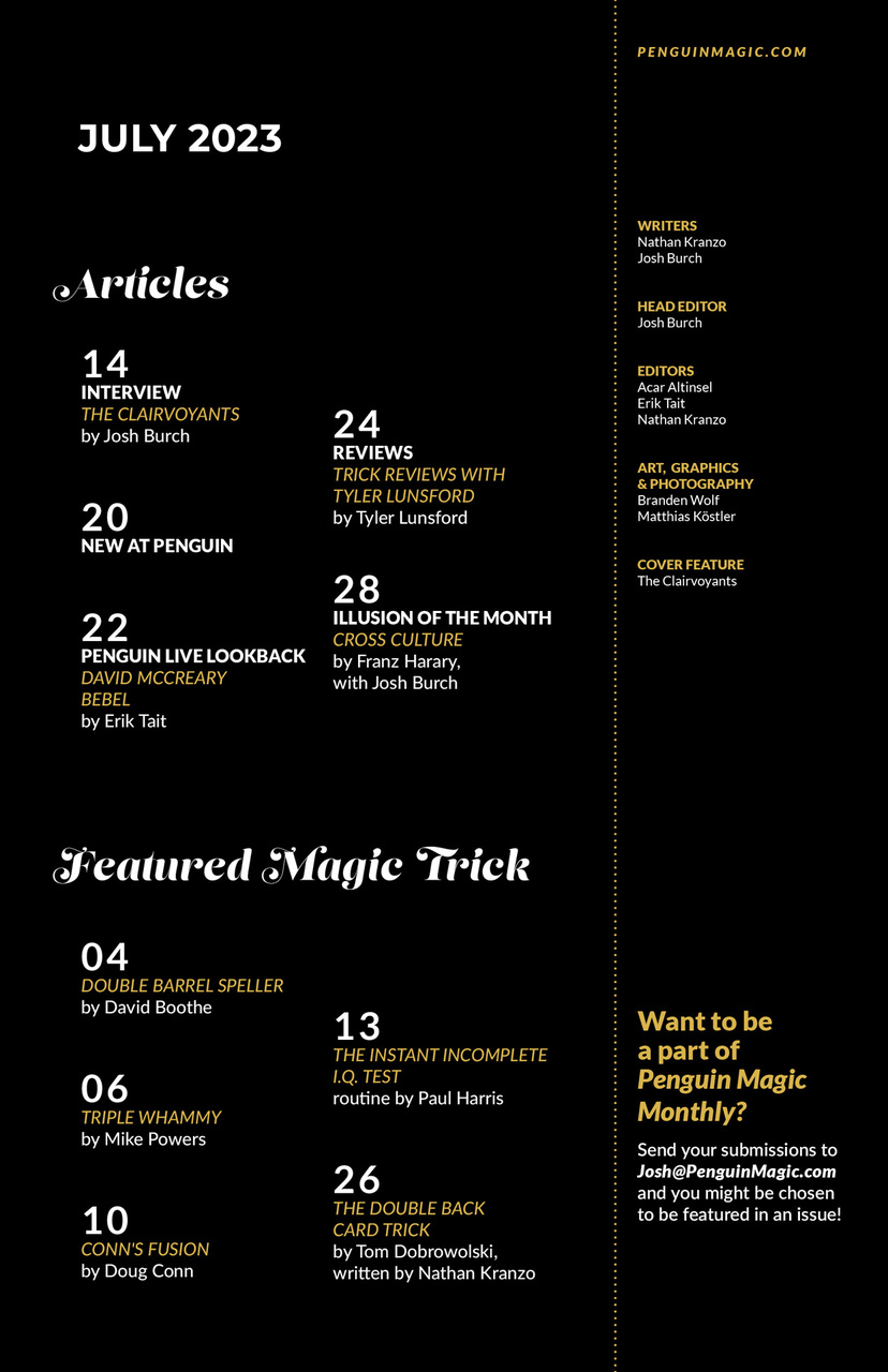 In this month's magazine, we chatted with The Clairvoyants, Thommy Ten, and Amélie van Tass about their experiences on America's Got Talent, recent marriage, and brand new world tour. These mentalists were the runner-ups on their season of AGT, and they headlined the Illusionist for many years. They now have their own show they are traveling around the world filling concert halls and arenas alike.