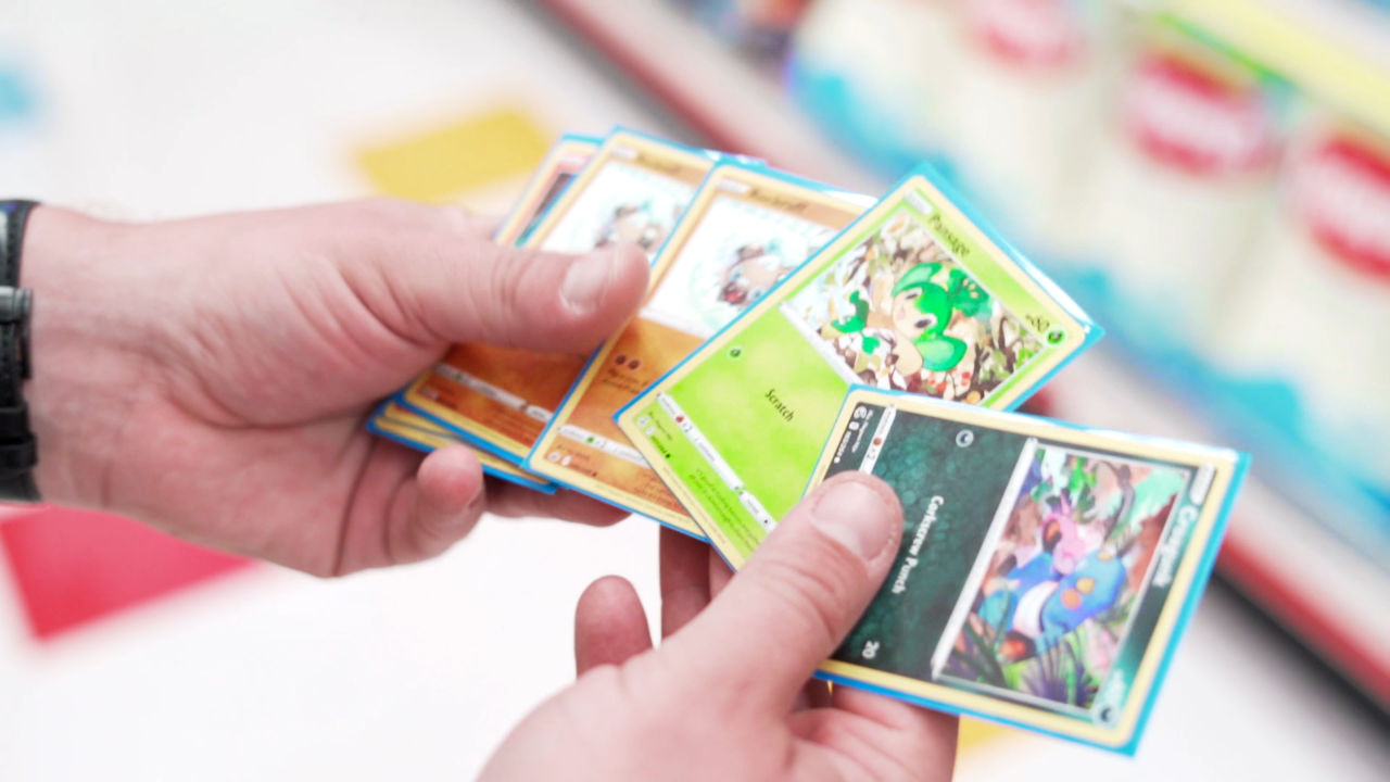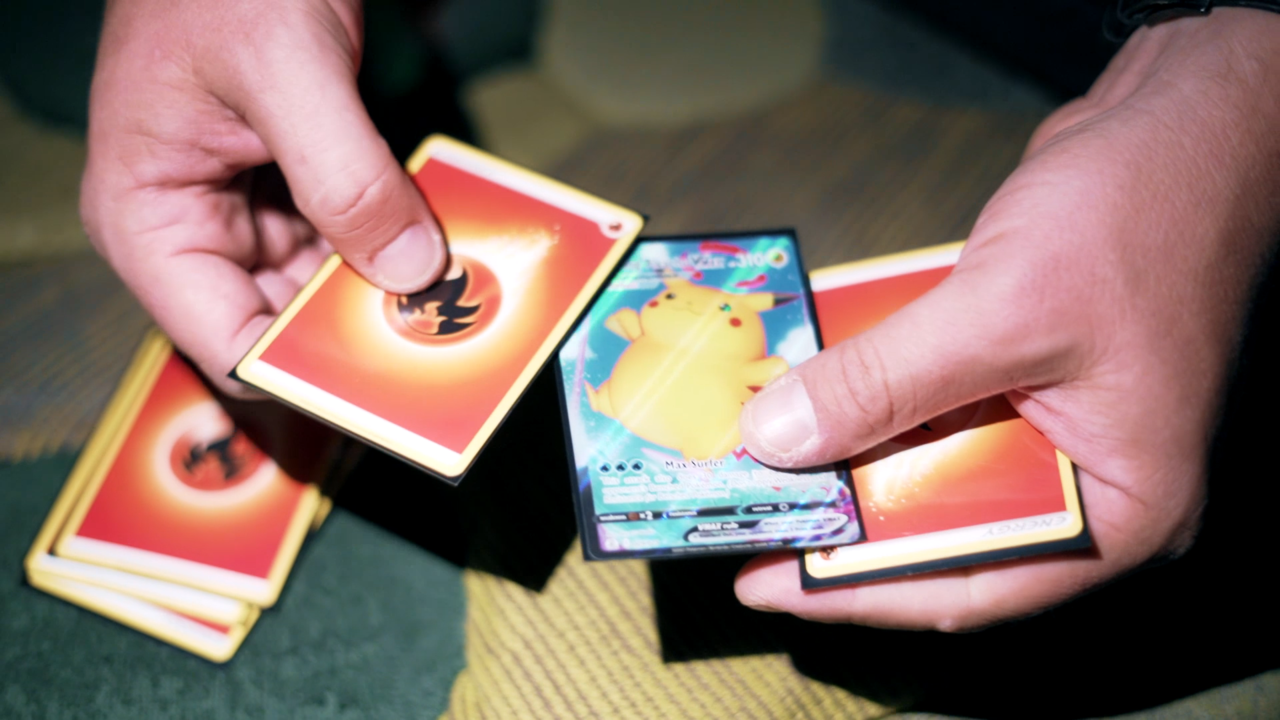 of the cards visually and instantly changes back to an assortment of valuable Pokémon cards.
