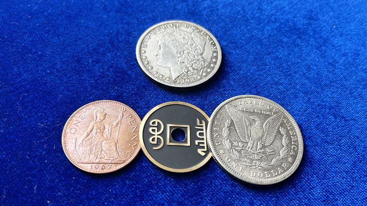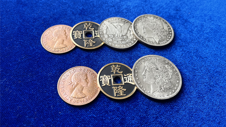 You hold four different coins in your hand, they are two silver Morgan coins, one copper coin, and one ancient coin. You close your palm and then open it again, 'There's only a silver Morgan coin left in your hand.'. The other three coins just disappeared like real magic!