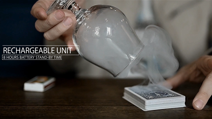 After your favorite card magic you take a glass (may be borrowed) and place it upside down on your deck of cards. You light a match and with a snap of your fingers the flame of the match is magically "blown" out -you catch some of the smoke and blow it towards the glass... visually and magically mystic smoke starts to materialize out of nowhere, filling the whole glass in just seconds with thick, white smoke. This looks simply astonishing.