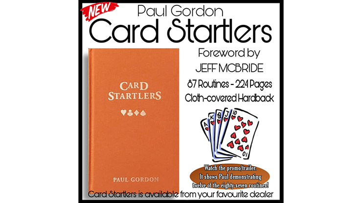 Card Startlers is a beauty! It contains 87 NEW routines, 224 pages and boasts a foil-embossed cloth-covered hardback with saddle-stitched pages and head and tail bands. The reviews and comments are amazing! Magic Orthodoxy (on YouTube) RAVED about it. The promo/trailer video is a first in magic publishing. Why? Well, it shows Paul performing a dozen routines from the book (with no dodgy edits) and you can watch another forty plus on his YouTube channel. The tricks are all doable workers; mostly with a regular deck. Paul teaches in a nice and friendly conversational manner and most tricks are fully taught (with no waffle) in one or two pages.