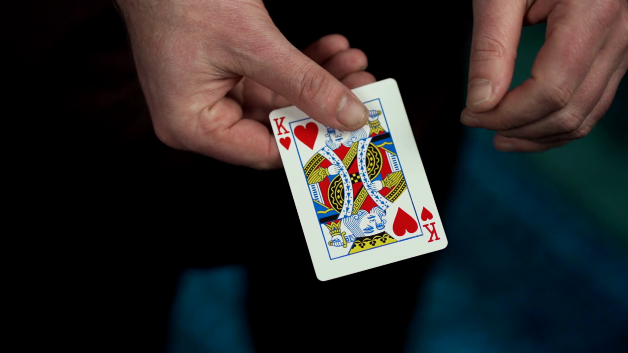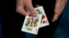The King and Queen of Hearts are removed from the deck, and then with a swipe of the thumb the king gives the queen his heart. You literally drag the pip from the King to the Queen. The corner of the King is blank and the heart is actually printed on the Queen! This effect doesn't stop there. You then have the King and Queen signed by different spectators. The two signed cards are then placed in between the spectator's hands where they impossibly fuse together.