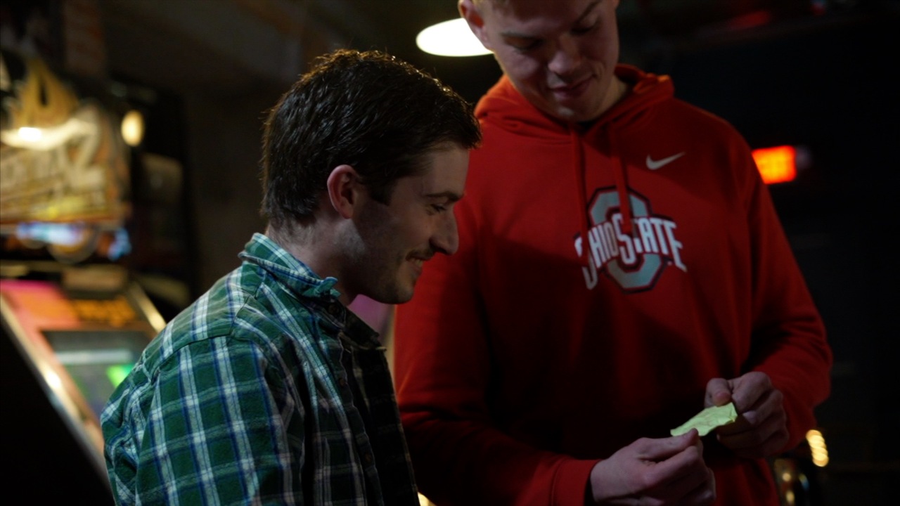 4. They open the prediction to find that impossibly, the exact city they named is written in red ink. They can keep both notes as souvenirs.
