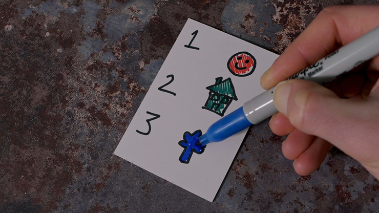 Three pens, three cards, three envelopes and three participants. All of the props are mixed and lots of choices made. Yet despite the fairness, you are able to prove that you knew the outcome of all events way ahead of time in this baffling close-up mentalism routine inspired by the traditional Chair Test plot.