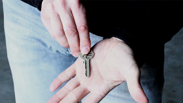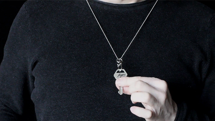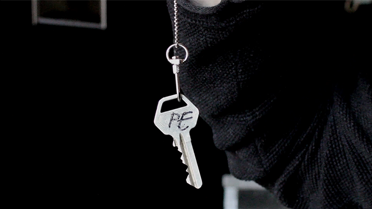 Here's what happens: You borrow a key which may be initialized by the spectator, and in an elegant, magical way their key seems to have dissolved from within your hands... it's GONE. With your EMPTY hands you reveal a doggy chain around your neck from behind your shirt with a clasp on it... locked onto the clasp is the spectator's key.