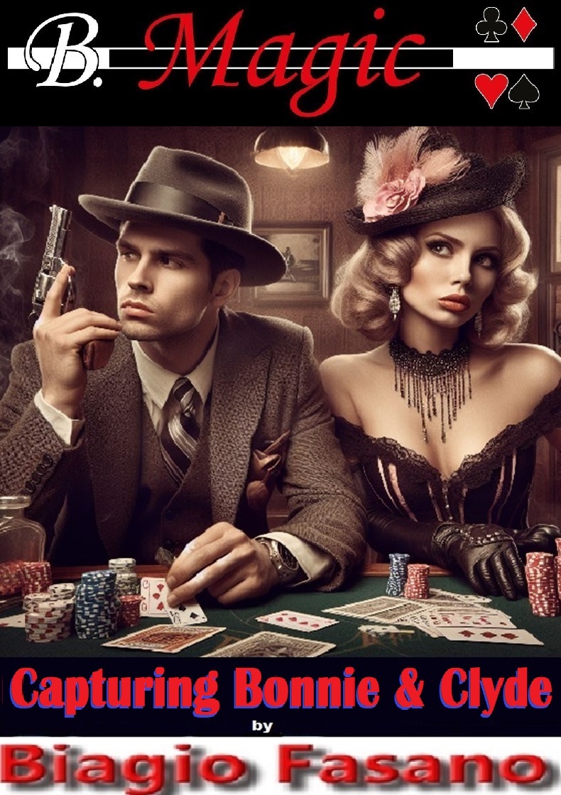 A first spectator will cut the first pack at will, thus choosing the card that will represent Clyde. Once memorized, he will lost it. Another spectator will do the same, cutting the second pack to secretly determine the card she must remember as representing Bonnie. Finally, the conjurer will turn to face, taking it from the third pack, a card that will indicate the sheriff leading the police and he will also scatter it among the other cards. The three bundles will then be reassembled together and cut by both spectators, who will also indicate the few trustworthy men the police could use for capture.