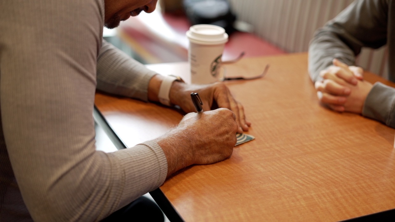 You notice that the table you are sitting at is wobbly, so you remove the sleeve from your coffee cup and put it under the table to stop the wobble. Next, you borrow the sleeve from their coffee. You sign and date the sleeve. In an instant, the signature and date that were written in permanent marker vanished from the coffee sleeve. The spectator can then remove the sleeve from under the table and discover the signature and date have reappeared on the sleeve that was placed there from the very beginning.