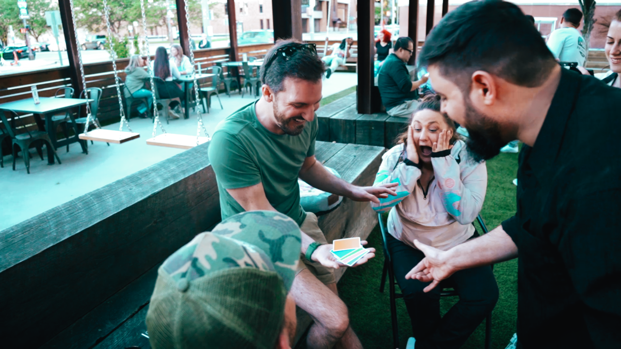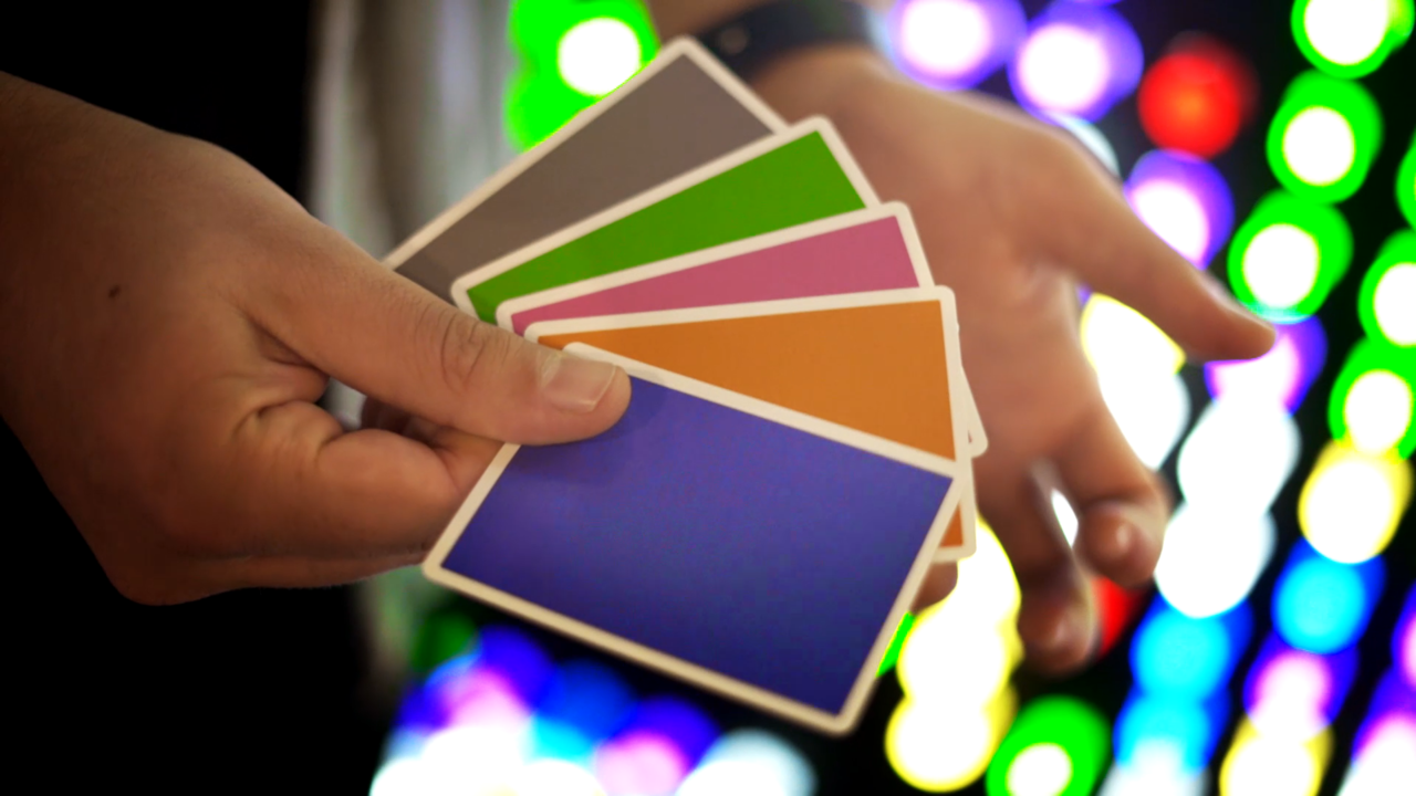 You introduce a small packet of grey-backed cards with odd green and red dots in patterns that form numbers. You explain that this is the standard test to check people for red/green color blindness. If they can see the numbers in the patterns made up of the dots, then they are not color blind. On the other hand, if they can’t see the numbers, they should have their eyes checked. Upon confirming that everyone sees the numbers, you make a magical gesture and change the way your audience perceives colors. When you display the cards again, the audience is momentarily confused because everything looks the same. That’s when you turn the cards over, and the grey backs have transformed into a rainbow of colors. The cards can then be handed out for immediate examination.