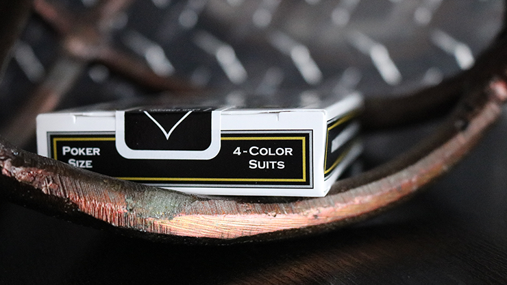 No-revoke four-color deck (Red Hearts, Blue Spades, Green Clubs, Yellow Diamonds).