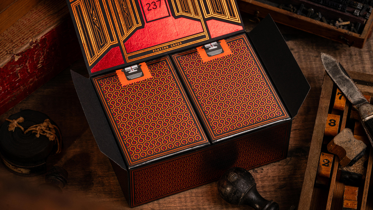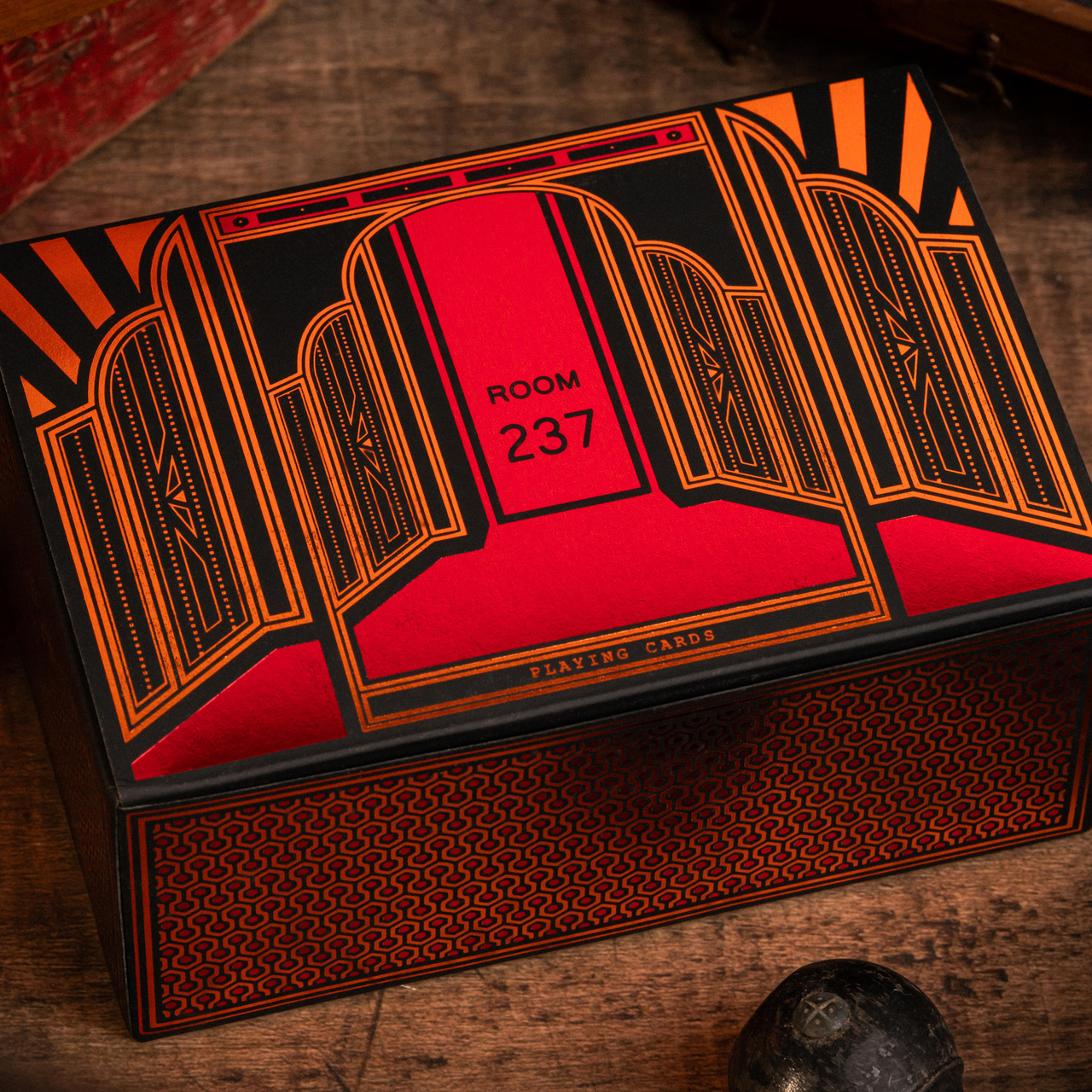 Available singly or in 6-packs with custom half-brick boxes (also foiled!), Room 237 decks are printed using vegetable-based inks and water-based coating. This means the cards not only shuffle, fan, and spread perfectly for all of your favorite games & tricks, they're made with the planet in mind!