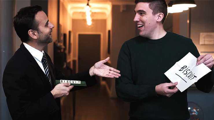 When the mentalist shows the chosen letters, the spectator finds a word himself by reversing letters! Even stronger, the spectator opens the dumpling of paper he had on him from the start and the word has been written on it! The prediction is perfect!