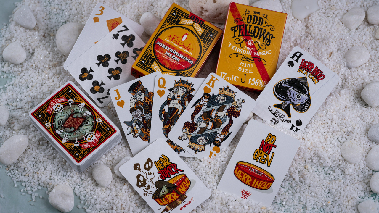 This pocket-sized pal of The Dude and all of the other Odd Fellows still contains a fully playable deck! It has its own Ace of Spades & Joker designs, as well as a custom Herr Ingo back design.
