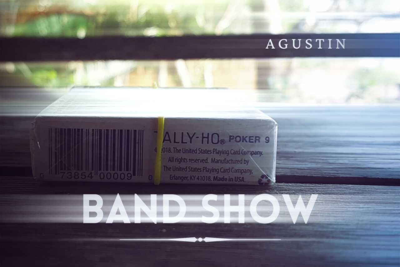 In the blink of an eye a folded card appears on the rubber band attached to the card case.