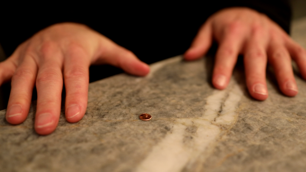 2. As you cast a shadow on the penny, it shrinks to a teeny tiny penny. You NEVER TOUCH the spectators hand.