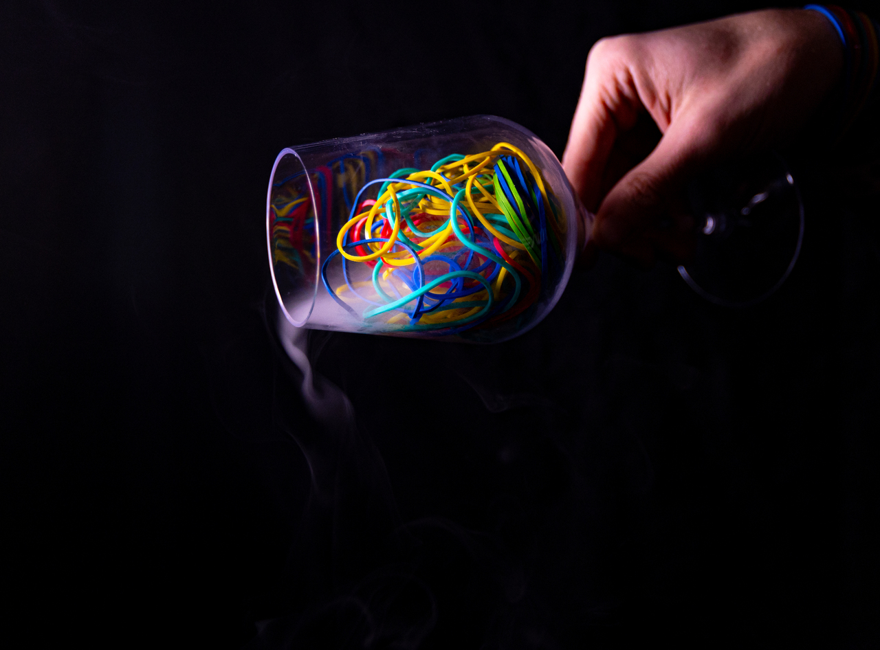 With a single rubber band, you’ll blow your audience’s mind by visually passing through objects strand by strand. You can penetrate a ring, a pen, a rubber band, a bar and even objects held side by side by your spectators!