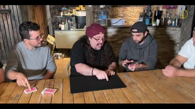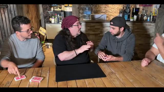 2. One person remembers a card from their packet and then half the deck is reassembled, and this spectator puts their finger on the packet to make sure it stays untouched.