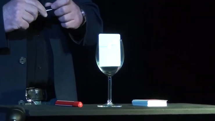 This is a very visual quick prediction change, you can perform in both parlor and close up conditions as well. The prediction of the first spectators chosen card, transforms in to the prediction of the second spectator's card. Or the incorrect prediction transforms in the correct prediction. The plastic card can be examined and the glass is ungimmicked!