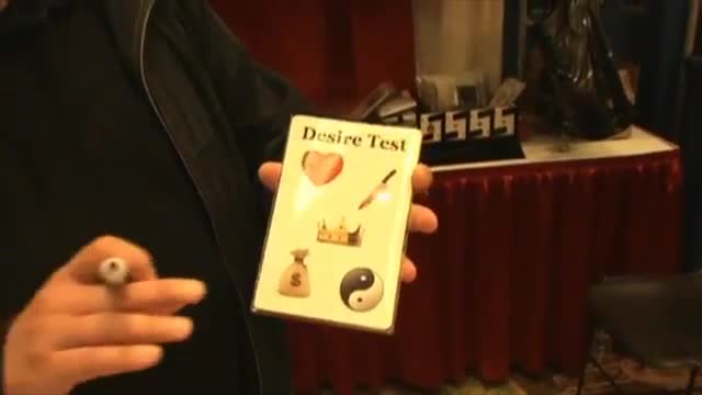 The mentalist predicts the dominant desire of the the spectator. For this experience the presenter uses some cards with the possible desires, a transparent envelope holding these cards and a whiteboard marker. The drawn prediction on the back of the envelope matches with the picture on the card chosen by the spectator.