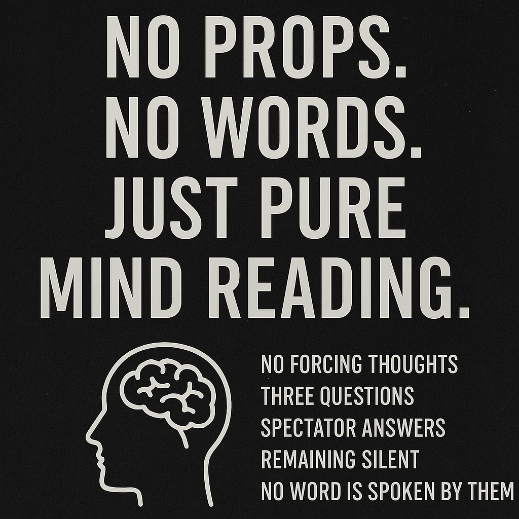 With just three questions and a solid structure, you'll be able to peek thoughts in a way that feels impossible to the spectator. No forces. No guessing. Just pure mentalism.