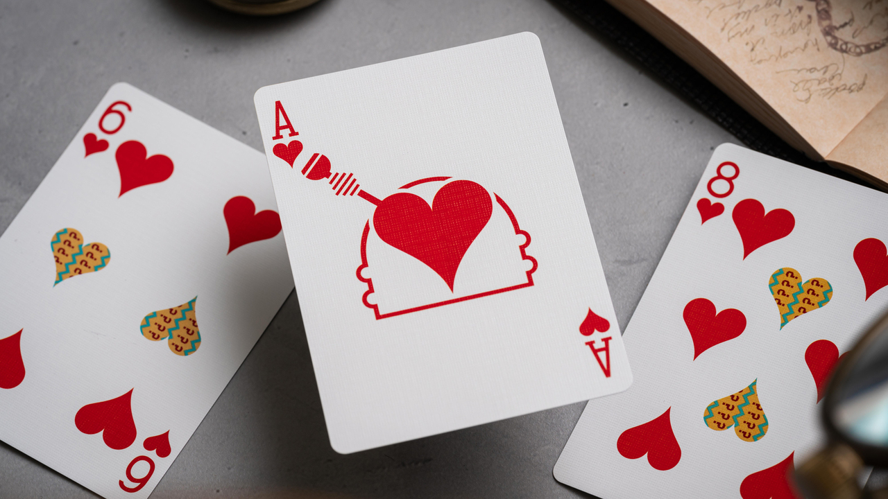 Featuring completely customized artwork, all of the spot cards have accent pips with different patterns and the courts are a light-hearted twist on classic designs. Two custom Jokers are included.