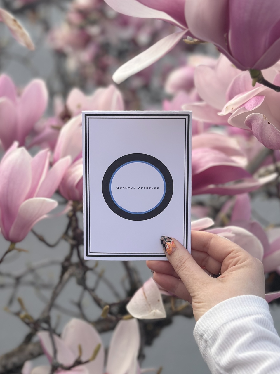 The moment you lay the card down on your wallet or phone, you can visibly shift the hole around. Once you let go, you can pick up the card and the audience is able to clearly see through the hole again.