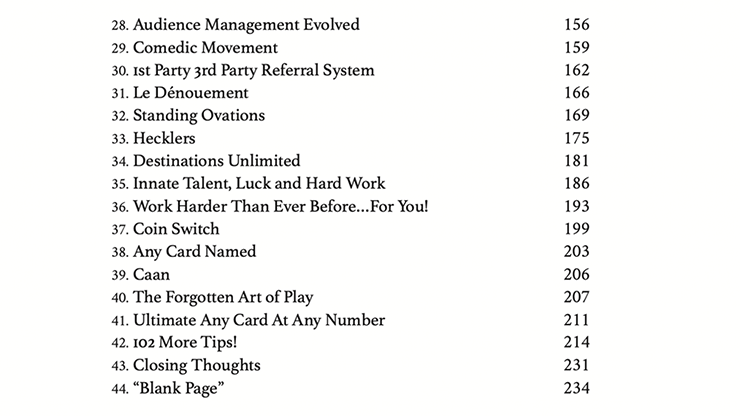 Scott Harris - Multi-millionaire Canadian comic Scott Harris shares numerous insights into the entertainment industry that are rarely discussed, empowering us all to strive for our best selves. Don't forget your notebook! Seriously, the amount of valuable information here is like striking gold in a mine... A 3-part interview released over weeks 1,2 and 3... Rising Star US comic Jeff Bodart shares valuable insights on performance, authenticity, pausing, stepping out of your comfort zone, and much more. This interview is filled with valuable advice for performers who want to get even better fast... The real invisible deck (value $9.99) included for free plus an interview with Oscar winner Norman Wanstall who won the biggest prize of them all. A fascinating interview dealing with suspension of disbelief, winning an Oscar, what he looks for in a magical routine, the hook and much more... The 10 Greatest Card Tricks that anyone can do (value $9.99) an ingenious peak from Elliot Bibby and the spin flip double... Tony Moore, a founding member of Iron Maiden and former Cutting Crew Star (Died in Your Arms), is not only a renowned musician but also a passionate magician. In this interview, he shares valuable insights from his extensive experience in show business. Known for discovering talents like Ed Sheeran, Moore generously reveals behind-the-scenes secrets that are truly enlightening. This interview is undoubtedly a treasure trove of knowledge for anyone interested in the entertainment industry. You're unbelievable, the routine that fooled Roy Johnson revealed in full. You will use this! Coin roll, my technique for springing the cards, an idea for David Regal's clarity box, a simple torn and restored card and the performance of the ultra-visual and baffling zoom torn and restored card! Interview with the greatest close-up magician alive today - Phil Jay. He has done more than ANYONE! Seriously... listen and absorb, this is amazing... 10 amazing tricks with a Svengali deck...pick up this classic and run a mile! GoPro secrets to getting the best theatrical footage possible using this incredible piece of equipment... The swing cut false cut released for the first time ever... 5 different double lifts The flip double taught in detail The second deal taught in an innovative manner My favorite ambitious card move of all time, revealed and taught. The invisible pass DVD streamed direct to your app (value $19.99) "The best invisible pass I've never seen, you b******"-- Jerry Sadowitz (The Crimp) The flying card at any number, 2 methods revealed, great for social media and tv, plus Dugdale's Dart over the head... A business idea that you can implement right now to earn extra $$$ revealed in full... A close up performance analyzed objectively to help both of us grow! Plus, the best riffle force in the world is taught... Violet is a stunning trick that was first featured in Roy Johnson's special edition of Abra. I am extremely proud of this piece as it is perfect for strolling performances. It is highly visual and easy to understand, with the added bonus of an instant reset. Instant resets are always a plus! Going out of your comfort zone with a never released before piece of footage... If I can do it, so can you... Paul Zenon is undeniably one of the top three comedy magicians globally, in my opinion. This interview is a must-watch for insights on his persona, TV techniques, and more! Unreservedly recommended! A killer social media application that is vastly underused. See the potential and start doing this on your channels... False overhand shuffle taught closer than ever... Masterclass on how to become a successful magician - I am interviewed here by Craig Petty Instant signed transpo, this visual quickie is astonishing and truly impressive to witness. For the first time ever, I let you into the pitch that earned me in excess of $40,000 in just a few weeks. In the pandemic I did not earn $1 for over 6 months. Here is an example of a short pitch that was very successful. Transformation aces - perhaps the most visual card effect of all time. 4 kings are fairly dealt down on the table and visually transform to the 4 aces. The most technically challenging routine on the portal, revealed for the first time. The Paul Stone interview - One of the biggest magic producers of all time talks. And reveals some gold about being a star, evolving as a performer and much much more...must see interview! The Adam Bloom interview - The author of the best book on comedy ever written joins us for another exclusive...must see! Mandy Muden gives a highly inspirational and encouraging interview. If you are going to do TV you have to watch this. It's invaluable. Tony Middleton best-selling magical author, performer and star of London's hit show THE MAGIC HOUR gives us incredible secrets to help all of us further our careers. Must see! The legend who is Wayne Dobson gives us GOLD. PURE GOLD... A marble penetrates a solid coin and falls into a bottle. Despite the coin covering the entire opening of the bottle. Elliot Bibby shares how to win magic competitions and why they are important. A genuinely insightful and amazing interview... Top US nutritionist and fitness expert Michael Sallustio shares what we need to be eating and doing to be at peak performance for every single show... Bruce Gold, one of the magic castles very top hosts and star performer shares unbelievably intelligent secrets and smart observations. If you host any events you have to see this. Pure Gold. Pun intended. Charles Bach star of The Wonders Theater in Myrtle Beach gives insider secrets and this is the chance to learn from one of the most inspirational people in show business...Compelling interview that will inspire you. A must watch. The Ultimate coins across, one of the best coins across of all times is taught in full...based on the work of Larry Jennings and Roy Johnson, you will do this all the time. It's a truly fantastic routine. Comedian Dan Wils