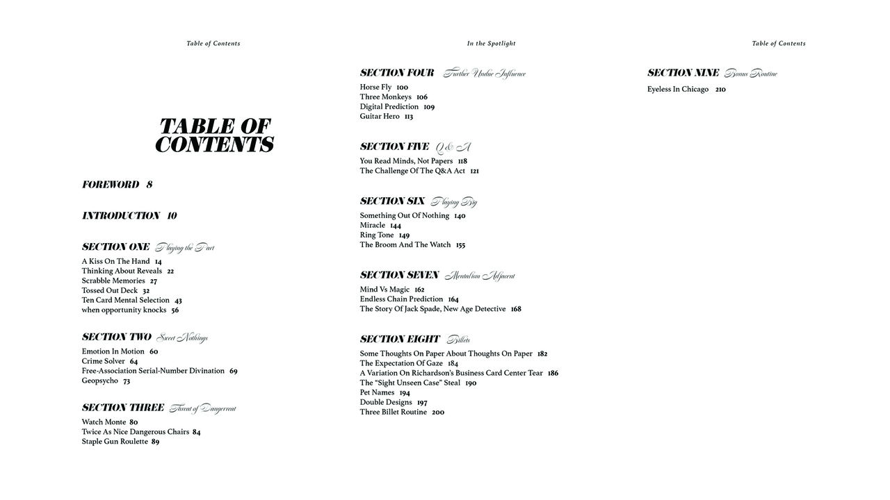 "As someone who’s spent a lot of time in meditation on revelations, I can confidently say that Christopher Carter’s “Thinking About Reveals” chapter is worth the entire price of In the Spotlight. He develops ideas that are typically overlooked by mentalists ranging from how and why we have our powers to how to transcend our material to being more than merely a puzzle to be solved." - Krystyn Lambert