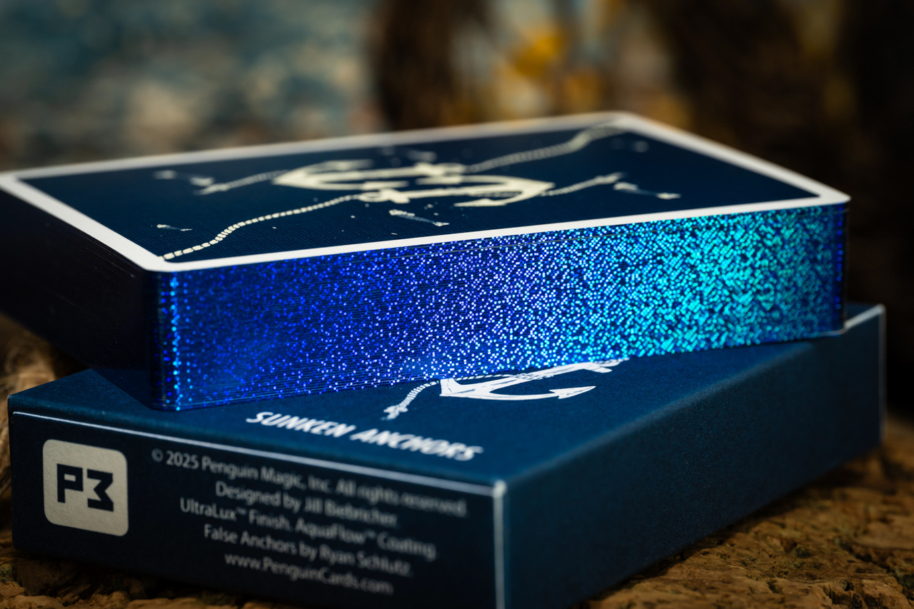 From the silent depths of the ocean rises a deck shrouded in mystery and crafted for discovery. Sunken Anchors is the newest addition to Ryan Schlutz’s acclaimed False Anchors series, created in collaboration with Penguin Magic. Drenched in deep-sea blue and wrapped in maritime intrigue, this deck feels like a long-lost artifact salvaged from the ocean floor.