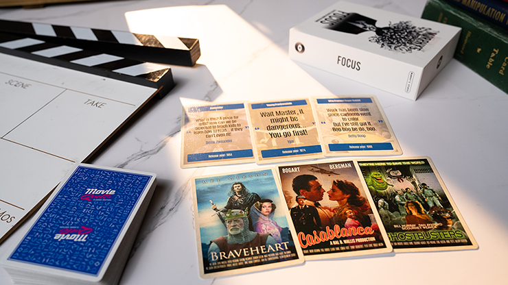 FOCUS begins as an ordinary set of Movie Trivia Cards. But beneath the quotes and poster artwork lies a series of magical plot twists that every film geek will obsess over!