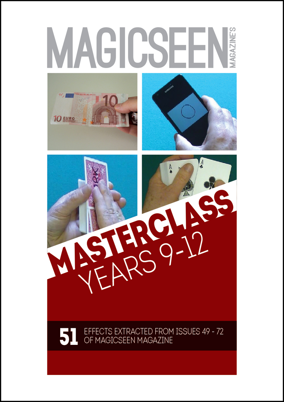 very four years we like to publish a collection of all the great magic that has appeared during the period in Magicseen’s Masterclass section, and from the issues which appeared in volumes 9-12 we offer you 51 effects and ideas from such well known and respected performers as Andy Nyman, David Regal, Chris Rawlins, Boris Wild, Mel Mellers, Pit Hartling, John Bannon, Vincent Hedan, Thomas Fraps, Dan Garrett, Anthony Owen and many others.